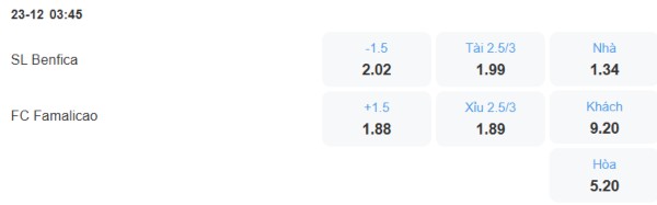 Nhận định kèo châu Á Benfica vs Famalicao: