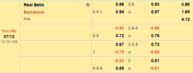 Nhận định tỷ số Betis vs Barcelona: