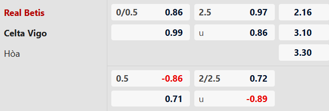Nhận định kèo Betis vs Celta Vigo: