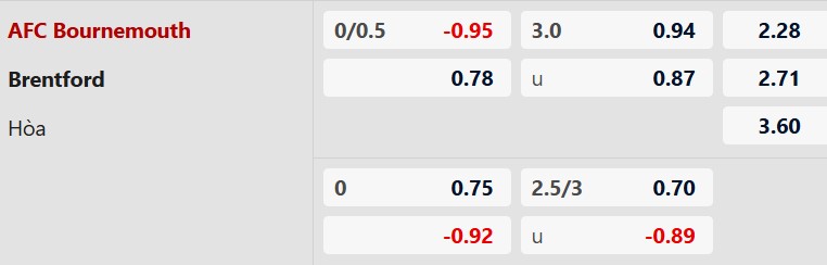 Nhận định kèo châu á Bournemouth vs Brentford: