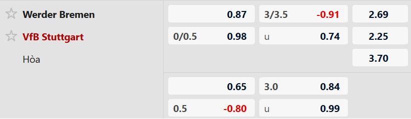 Nhận định kèo châu á Bremen vs Stuttgart: