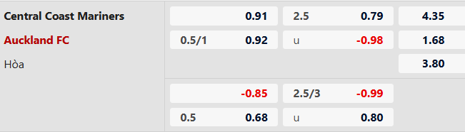 Nhận định kèo tài xỉu Central Coast vs Auckland FC: