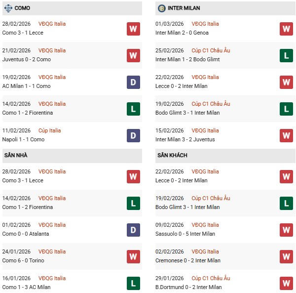 Bán kết lượt đi Coppa Italia, Como sẽ tiếp Inter trên sân nhà với mục tiêu giành một kết quả có lợi trước trận lượt về trên sân khách, đây không phải điều dễ thực hiện bởi đối thủ được đánh giá mạnh hơn họ.