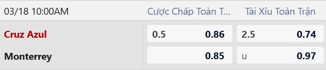 Nhận định kèo Cruz Azul vs Monterrey, 10h00 ngày 18/03, vòng 1/8 Concacaf Champions Cup. Phong độ ấn tượng cùng lợi thế sân nhà, Cruz Azul đủ sức nghiền nát đối thủ Monterrey.