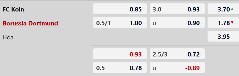 Nhận định kèo châu á FC Koln vs Dortmund: