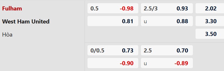 Nhận định kèo châu á Fulham vs West Ham:
