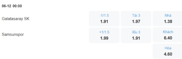 Nhận định kèo Galatasaray vs Samsunspor, 0h00 ngày 6/12: Thắng dễ