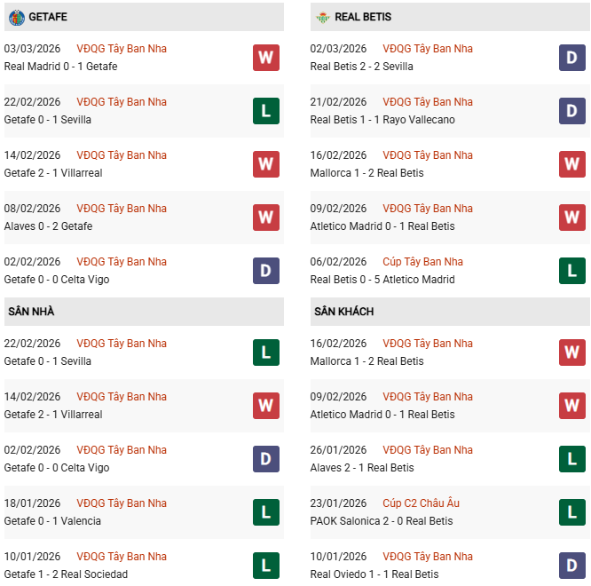 Getafe dưới thời Bordalás luôn ưu tiên sự chắc chắn nơi hàng phòng ngự, minh chứng là họ vừa giữ sạch lưới trước hàng công siêu mạnh của Real Madrid. Trong khi đó, Real Betis dù sở hữu những cầu thủ tấn công chất lượng nhưng lại đang thiếu vắng các hạt nhân sáng tạo do chấn thương. Thống kê cũng cho thấy các cuộc đối đầu giữa hai đội tại Coliseum thường kết thúc với kịch bản nghèo nàn bàn thắng.