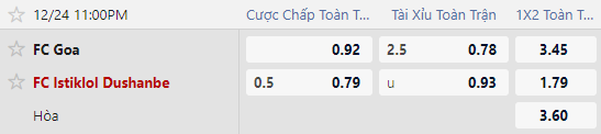 Nhận định kèo Goa vs Istiklol Dushanbe, 23h00 ngày 24/12
