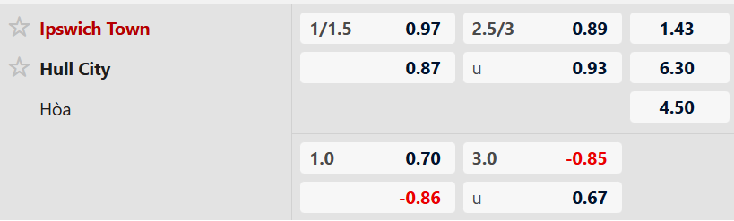 Nhận định kèo Ipswich Town vs Hull City, 02h45 ngày 04/03, vòng 32 Hạng Nhất Anh. Với lợi thế sân nhà và bản lĩnh trong các trận cầu lớn, đội quân của HLV Kieran McKenna được đánh giá nhỉnh hơn.
