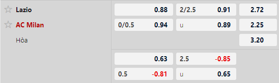 7 trận đấu gần nhất của Lazio chỉ có tối đa 2 pha lập công. Kịch bản tương tự cũng diễn ra ở 4/5 trận đã qua của AC Milan. Với việc 4/6 lần đối đầu gần đây giữa đôi bên có nhiều nhất là 2 bàn thắng, màn so tài tới đây giữa 2 đội được dự đoán sẽ không vượt mốc 2 lần lưới rung.