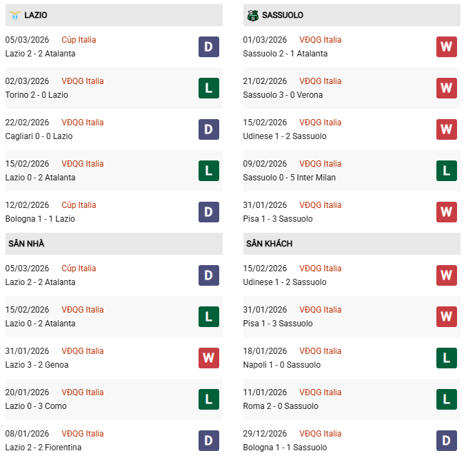 Xét về phong độ hiện tại, Sassuolo được đánh giá cao hơn, nhưng Lazio có lợi thế sân nhà và quyết tâm chấm dứt chuỗi trận thất vọng. Đây hứa hẹn là trận đấu giằng co, khó phân định thắng thua.