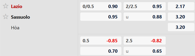 Nhận định kèo châu á Lazio vs Sassuolo: