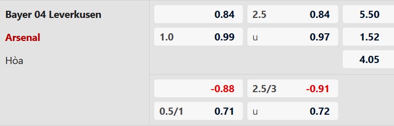 Nhận định kèo tài xỉu Leverkusen vs Arsenal: