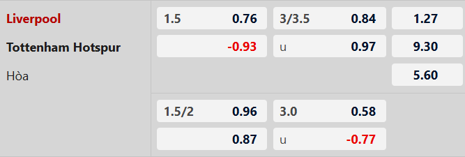 Nhận định kèo châu á Liverpool vs Tottenham: