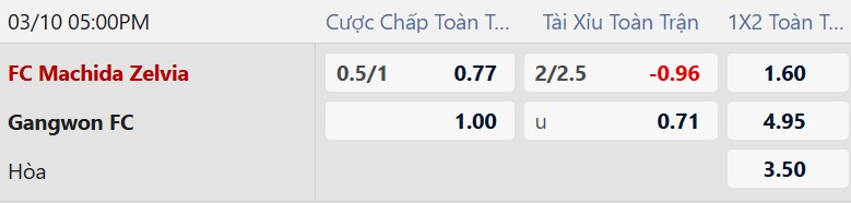 Lựa chọn "Tài" (Over 1.5): Một lựa chọn an toàn hơn là trên 1.5 bàn, vì Machida Zelvia thường ghi bàn rất đều đặn trên sân nhà (trung bình 1.72 bàn/trận) và Gangwon buộc phải dâng cao nếu để thủng lưới trước.