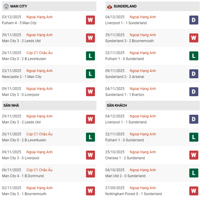 Với phong độ chói sáng của hàng công, bản lĩnh sân nhà và đẳng cấp vượt trội, Manchester City gần như nắm chắc thế trận một chiều. Sunderland khó lòng đứng vững trước sức ép khổng lồ từ đối thủ, nhất là khi họ vẫn thể hiện nhiều bất ổn trong phòng ngự.