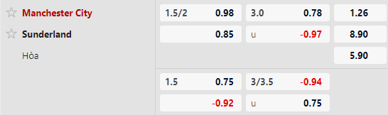 Nhận định kèo châu á Manchester City vs Sunderland: