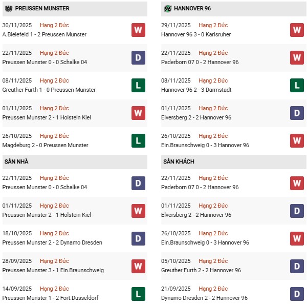 Nhận định kèo Munster vs Hannover, 0h30 ngày 6/12, Hạng 2 Đức