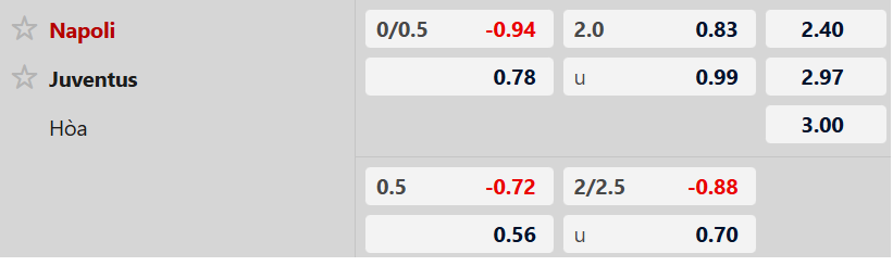 Nhận định kèo châu á Napoli vs Juventus: