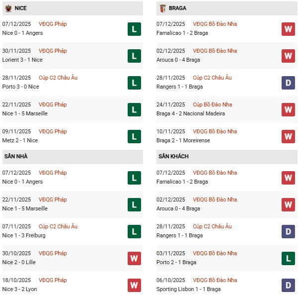 - Ở trận giao hữu năm 2023, Nice thua 0-2 trước Braga.
