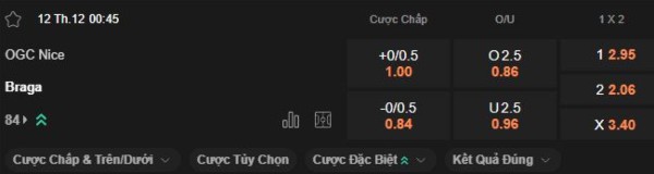 Dù phải hành quân đến sân Allianz Riviera, nhưng trước một Nice thi đấu rời rạc và không còn nhiều mục tiêu, Braga hoàn toàn có thể hướng đến chiến thắng. Tinh thần tốt hơn, lối chơi ổn định hơn và hiệu suất ghi bàn cao hơn là những yếu tố giúp Braga được đánh giá nhỉnh hơn ở kèo đấu này.