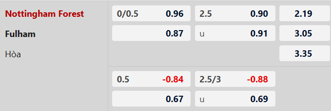 Tỉ lệ hòa trận này được đánh giá khá cao. Forest rất cần điểm nhưng hàng công thiếu vắng chủ lực Chris Wood nên khó kết liễu đối thủ. Trong khi đó, Fulham cũng đang có dấu hiệu hụt hơi. Một kết quả chia điểm là kịch bản hợp lý cho cả hai để cắt đứt mạch trận thất vọng.