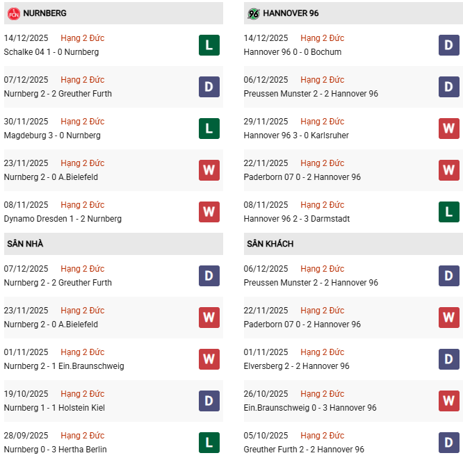 Với Nurnberg, 3 điểm trên sân nhà không chỉ giúp họ tiến gần hơn tới top 10 mà còn là cơ hội để khẳng định bản lĩnh trước một đối thủ đang có phong độ cao. Ngược lại, Hannover 96 cần chiến thắng để duy trì vị trí trong nhóm dẫn đầu và bám đuổi Schalke cùng Elversberg trong cuộc đua thăng hạng.