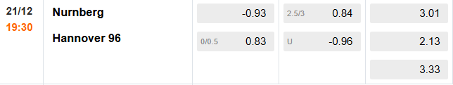 Nhận định kèo Nurnberg vs Hannover, 19h30 ngày 21/12 hôm nay