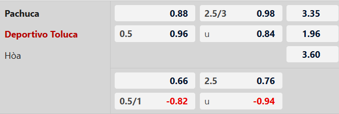 Thậm chí tại sào huyệt Estadio Hidalgo, Pachuca mới đánh rơi điểm số 1 lần duy nhất (hòa Club America). Tuy nhiên trong mọi trận đấu, thầy trò HLV Esteban Solari đều được đánh giá cao hơn đối thủ, khác biệt hẳn trận tới khi bị xếp dưới, lại còn lên đến +1/2 tương đối cao, đặc biệt xét trên tương quan giữa đôi bên vào thời điểm này, chưa kể Toluca còn vừa mất sức cho đấu trường châu lục.