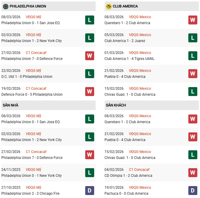 - Club America toàn thắng cả 2 trận đối đầu vừa qua trước Philadelphia Union.