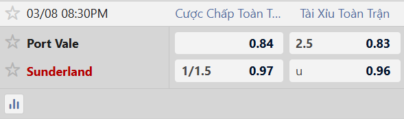 Nhận định kèo tài xỉu Port Vale vs Sunderland: