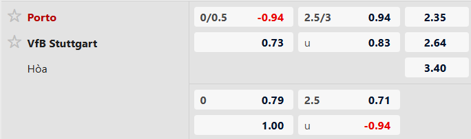 Nhận định kèo châu á Porto vs Stuttgart: