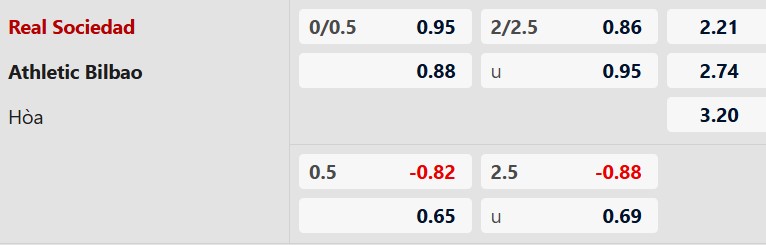 Nhận định kèo châu á Real Sociedad vs Athletic Bilbao: