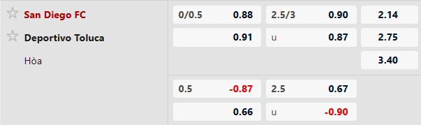 Hàng công bùng nổ: San Diego: Ghi ít nhất 2 bàn/trận trong 3 trận gần nhất. Hiệu suất sân nhà của họ là rất đáng nể (trung bình hơn 3 bàn/trận). Toluca: Trong 5 trận thắng gần đây, có tới 4 trận họ ghi từ 2 bàn trở lên. Lối chơi của các đội bóng Mexico khi đi khách thường khá cởi mở nếu họ đang có phong độ cao.