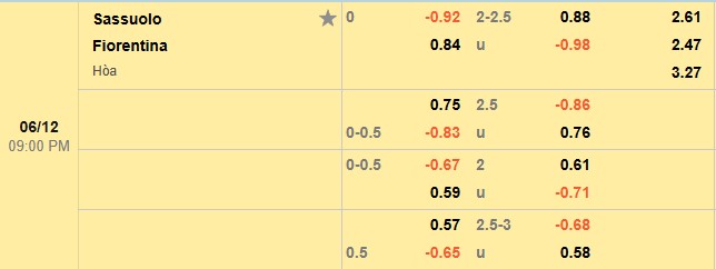 Nhận định kèo châu Á Sassuolo vs Fiorentina: