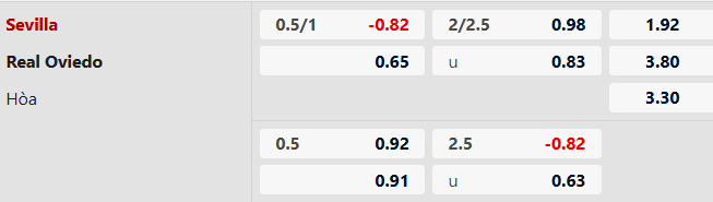 Nhận định kèo châu á Sevilla vs Real Oviedo:
