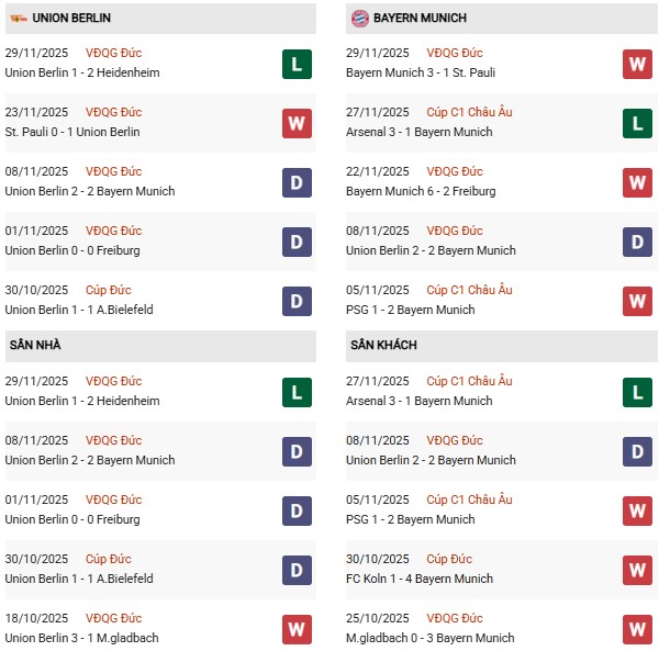 Thống kê phong độ Union Berlin vs Bayern: