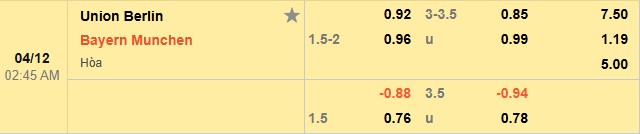 Nhận định kèo châu Á Union Berlin vs Bayern: