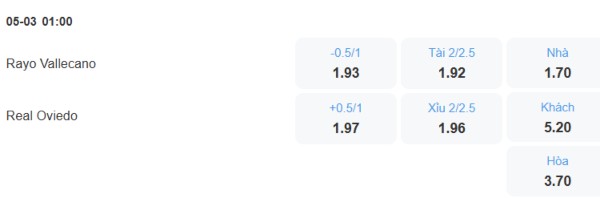 Nhận định kèo tài xỉu Vallecano vs Oviedo: