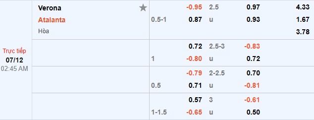 - 10 trận đối đầu gần nhất giữa 2 đội, Verona thắng 2, hòa 1, thua 7 trước Atalanta.