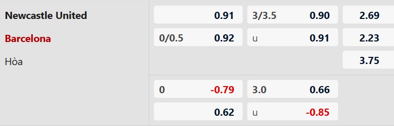 Nhận định kèo tài xỉu Newcastle vs Barca: